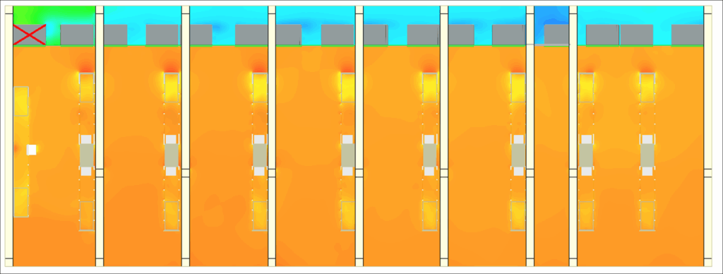 La simulazione CFD non è una soluzione generica, ma uno strumento ingegneristico pratico adattato alle esigenze reali, in grado di fornire una comprensione dettagliata e operativa dei fenomeni termo-aerodinamici in un ambiente temporaneo o instabile. In particolare, permette di garantire la fase di test assicurando che il comportamento termico dell’ambiente rimanga conforme ai requisiti, anche in condizioni di carico estreme o in caso di guasti alle apparecchiature.