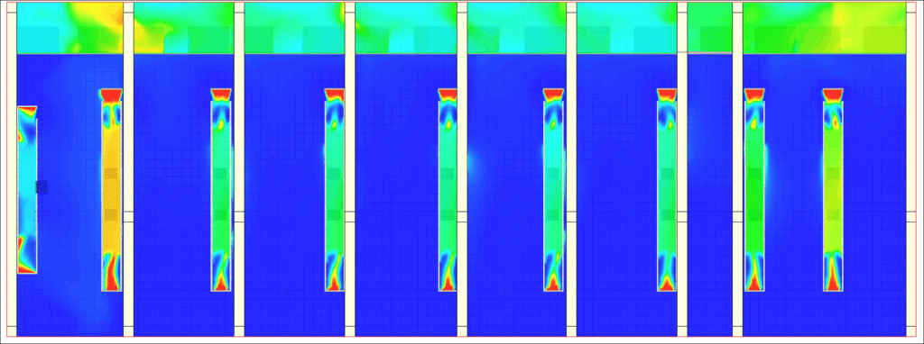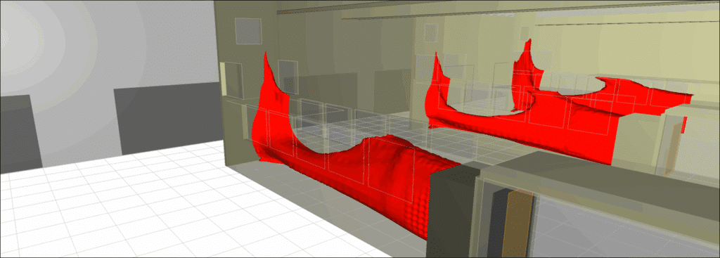 I nostri ingegneri studiano le sequenze di riavvio delle apparecchiature di emergenza, l’inerzia termica dei circuiti di controllo e gli aumenti di temperatura transitori in tutta la stanza. In questo modo è possibile identificare le zone più sfavorevoli e calcolare le temperature massime previste, in modo da garantire un perfetto controllo del comportamento termico durante i test e assicurare che nessun innesco accidentale del sistema antincendio causi danni all’edificio o interrompa le operazioni.