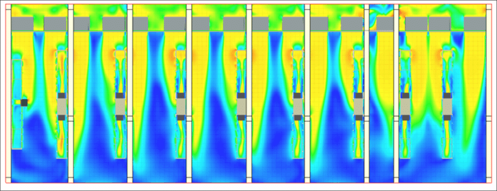 Il modello CFD genera immagini e video chiari, accessibili a tutti i soggetti coinvolti nel progetto – ingegneri, operatori, responsabili della sicurezza – che possono così anticipare eventuali aree di surriscaldamento, ricircolo o trip termico. Questa rappresentazione semplificata ma accurata del comportamento aeraulico consente di prendere decisioni rapide e informate, anche prima dell’installazione dei banchi di carico.